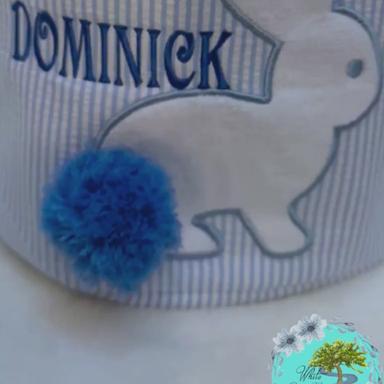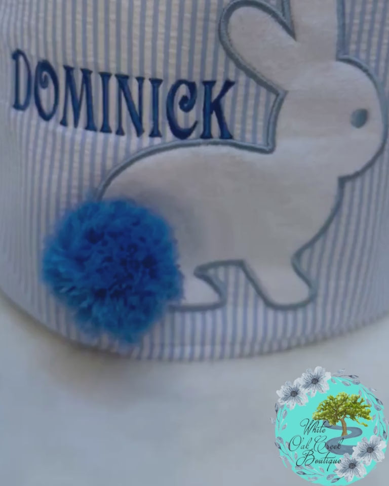 Blue Seersucker Embroidered Appliqué Easter Basket