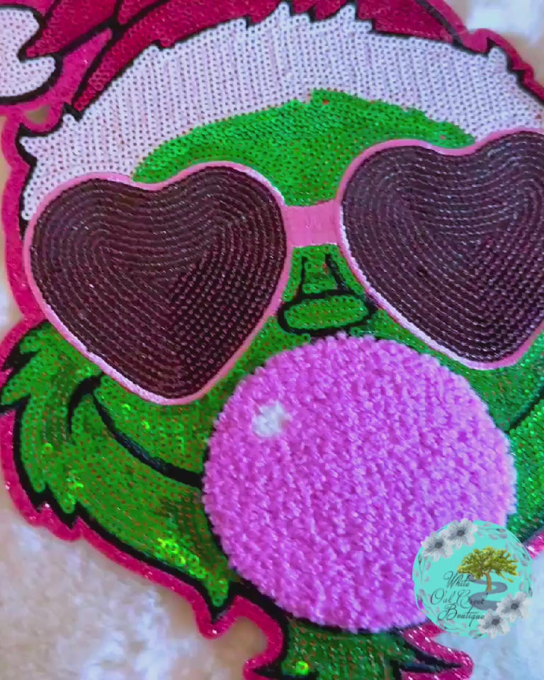 Grinch Bubblegum Chenille & Sequin 10” Iron-On Patch DIY