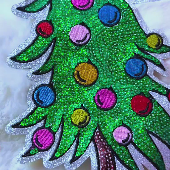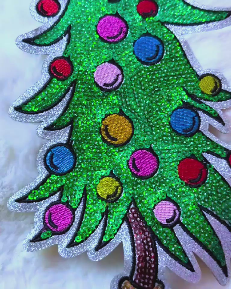 Grinch Christmas Tree Sequin 11.5” Iron-On Patch