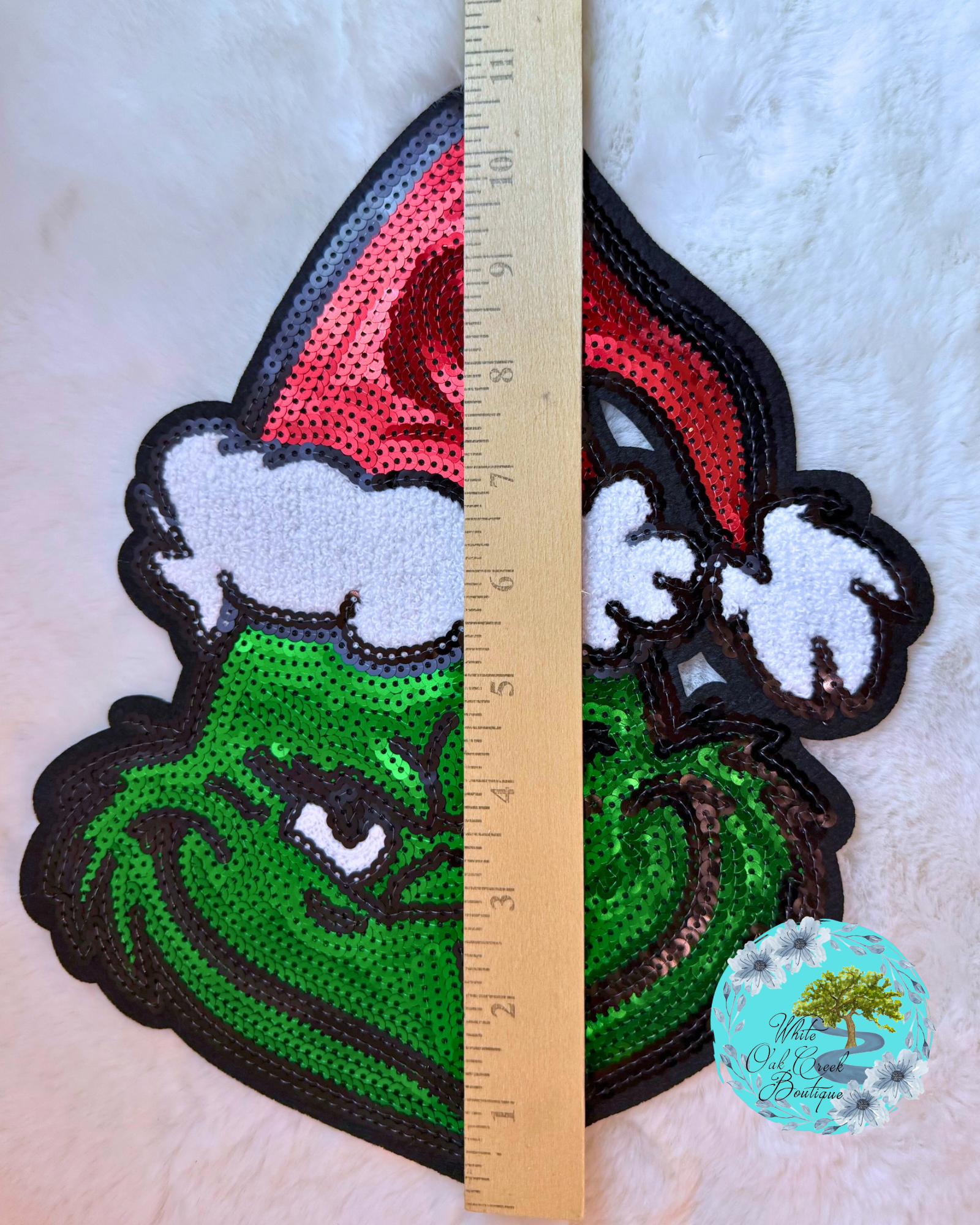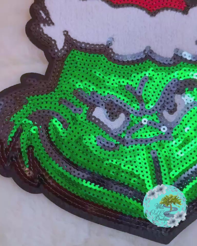 Grinch Sequin 11” Iron-On Patch DIY Iron-On Patch DIY Teal & White Floral with adhesive