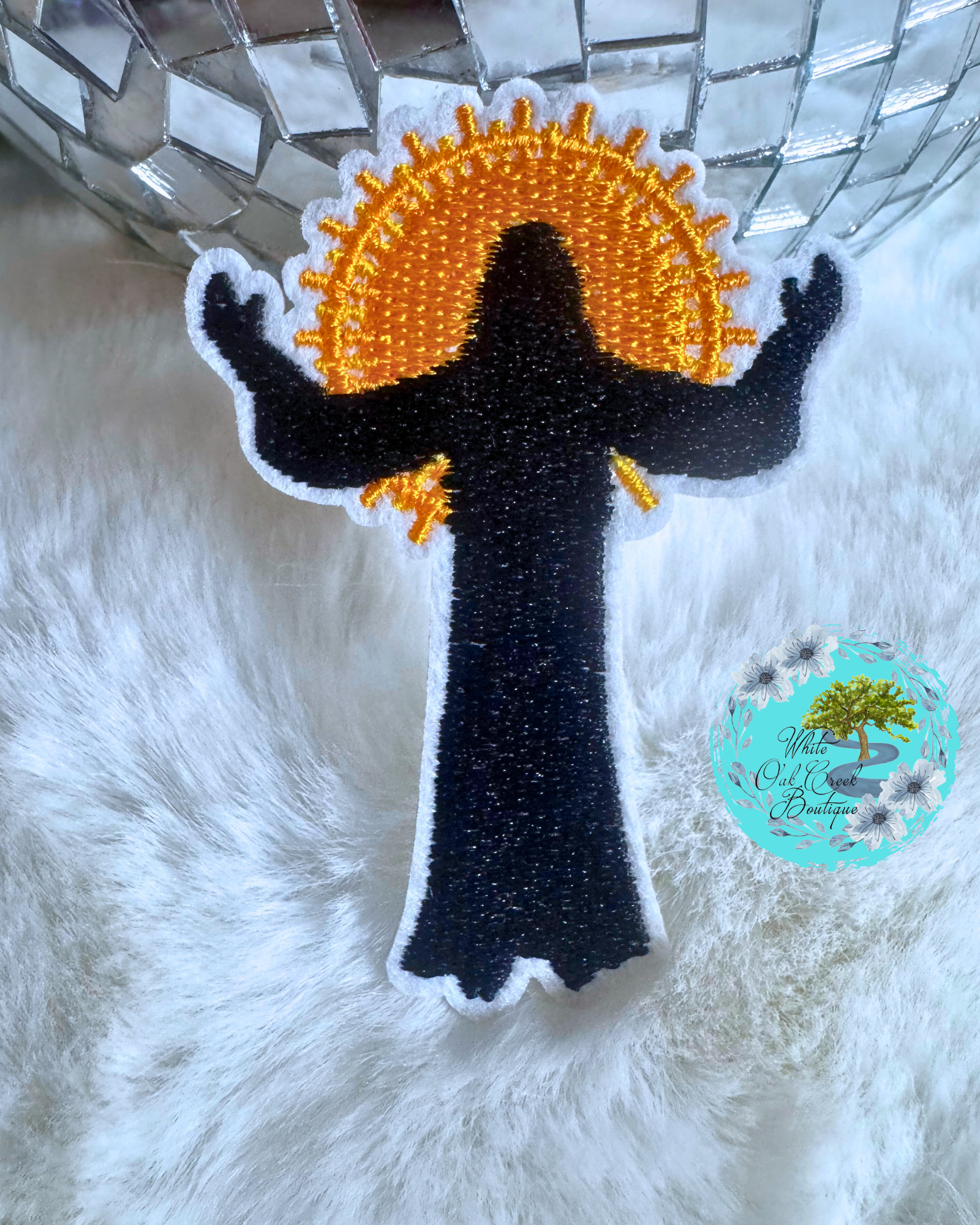 Jesus Sun 2.7” tall x 1.9” wide Embroidered Trucker Hat Patch with adhesive iron on