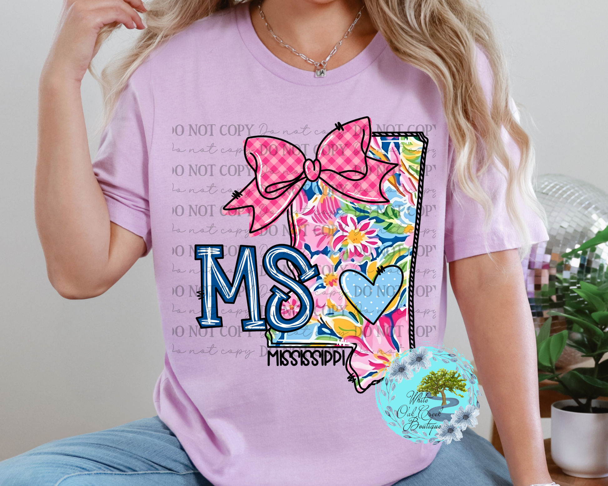 Mississippi Coquette Bow State T-Shirt Bella Canvas Soft Short Sleeve