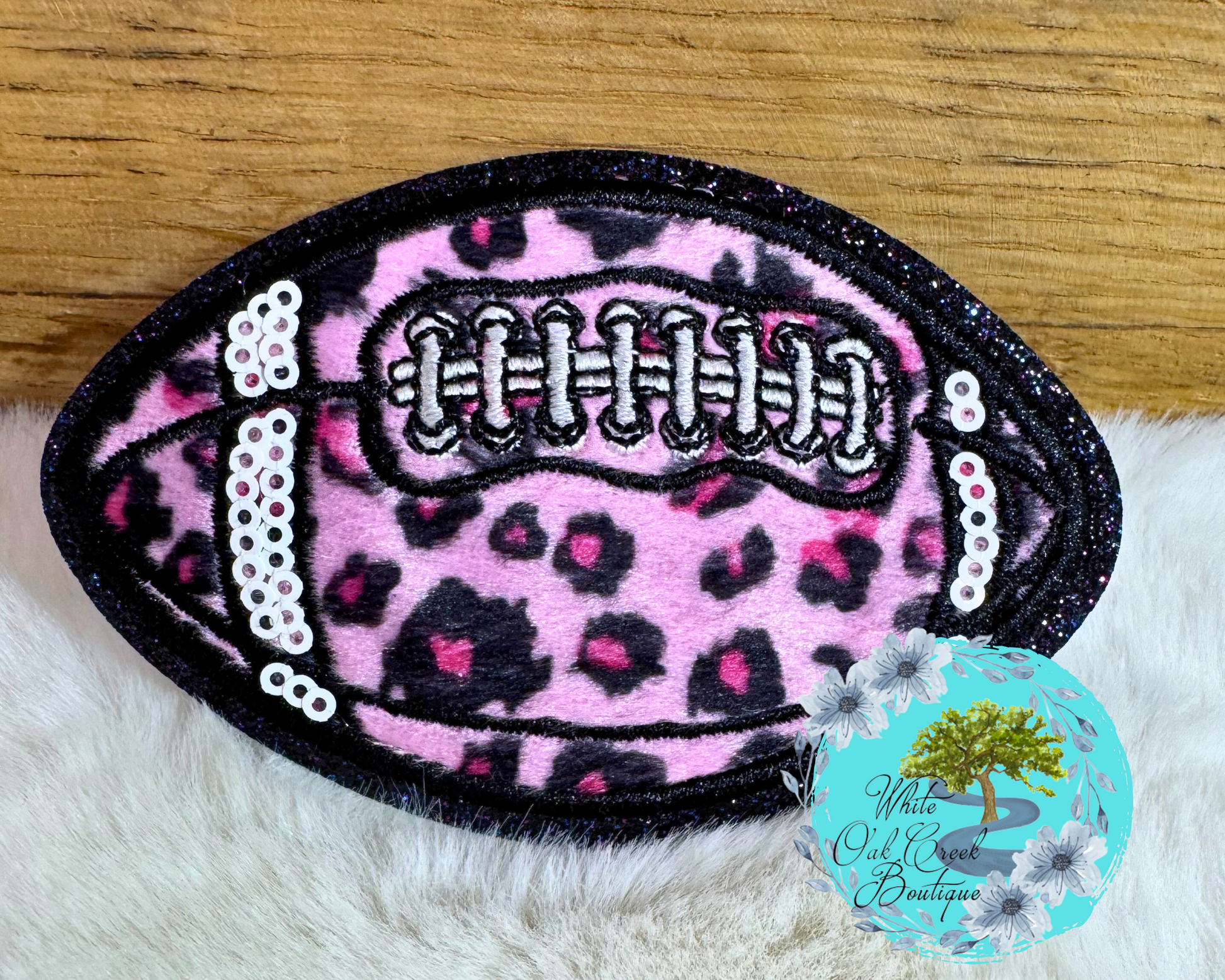 Pink Cheetah Glitter & Furry Football Embroidered Hat Patch