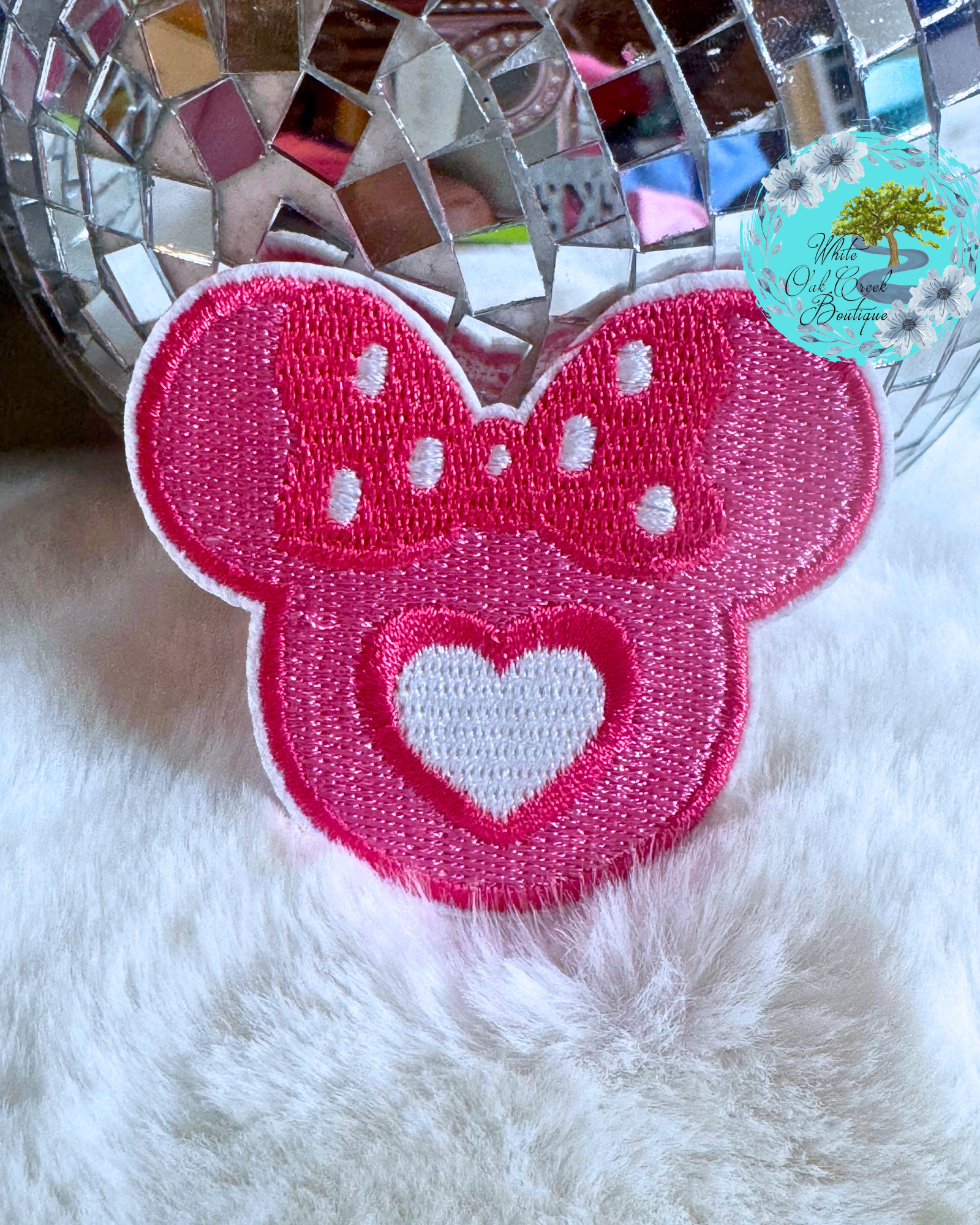 pink mouse 2.75” wide x 2.5” tall Embroidered Trucker Hat Patch with adhesive iron on